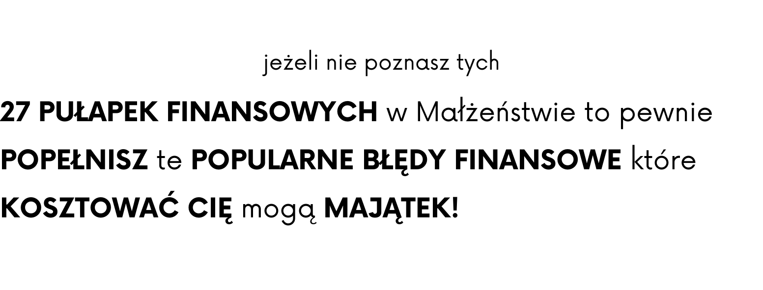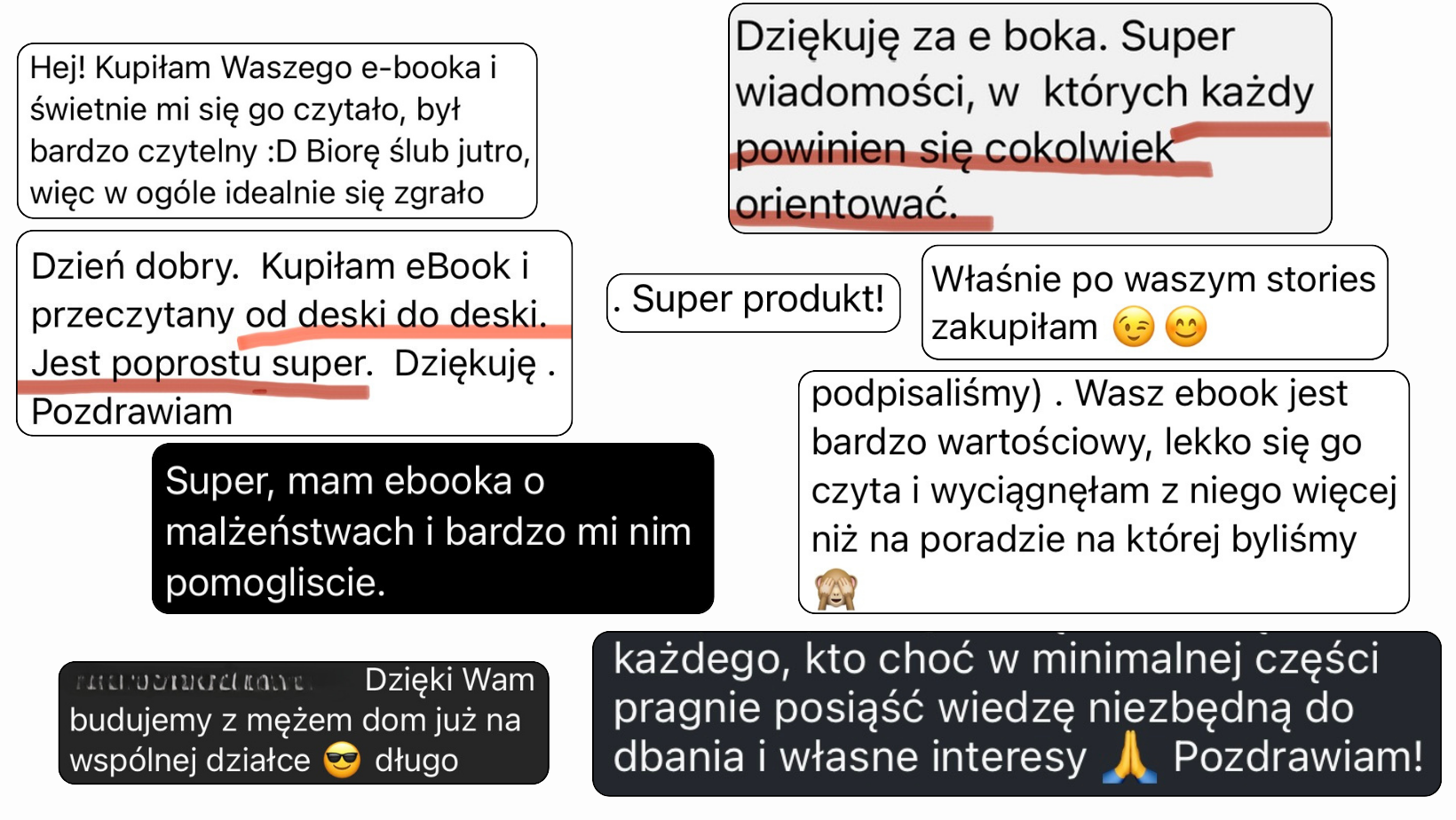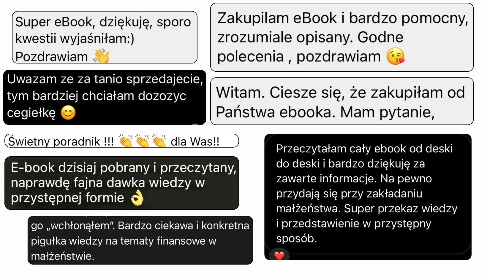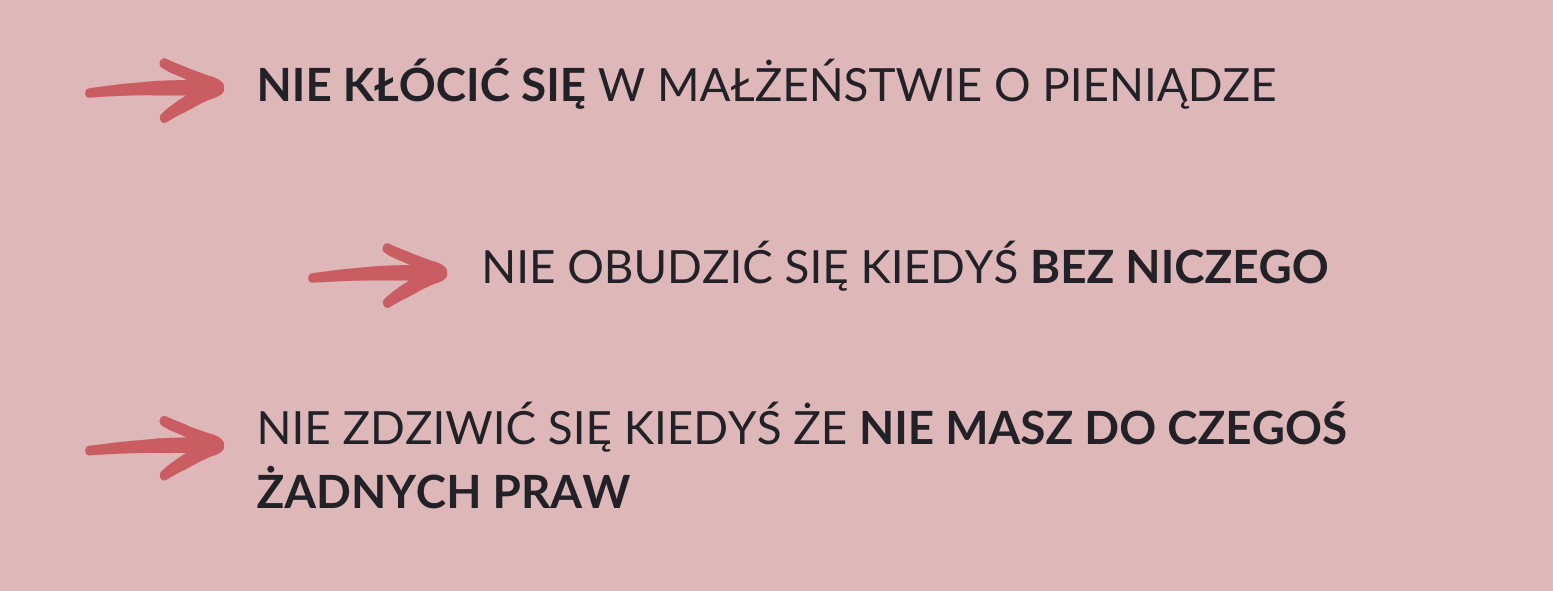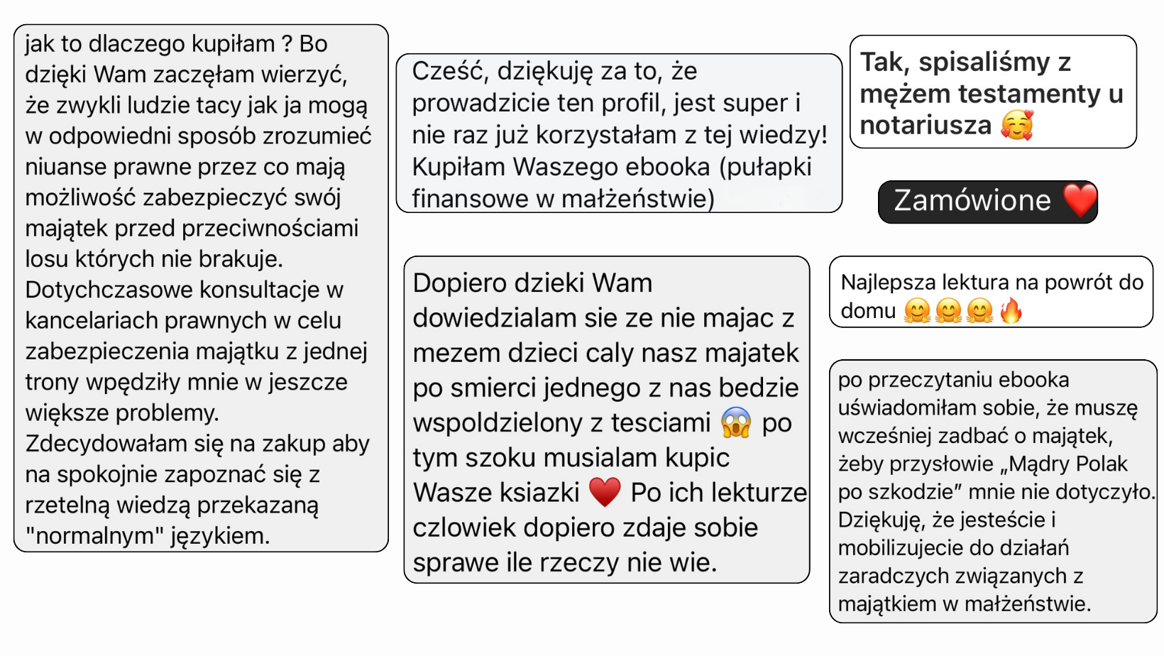 Dzięki tysiącom wiadomości, które otrzymaliśmy od Was, opracowaliśmy najbardziej powtarzające się problemy finansowe i majątkowe w małżeństwie i wskazaliśmy ich rozwiązania, abyś TY czuła/ł się bezpiecznie w małżeństwie !!