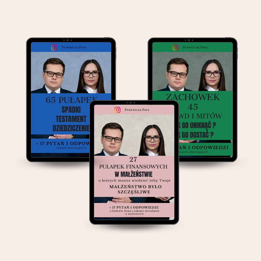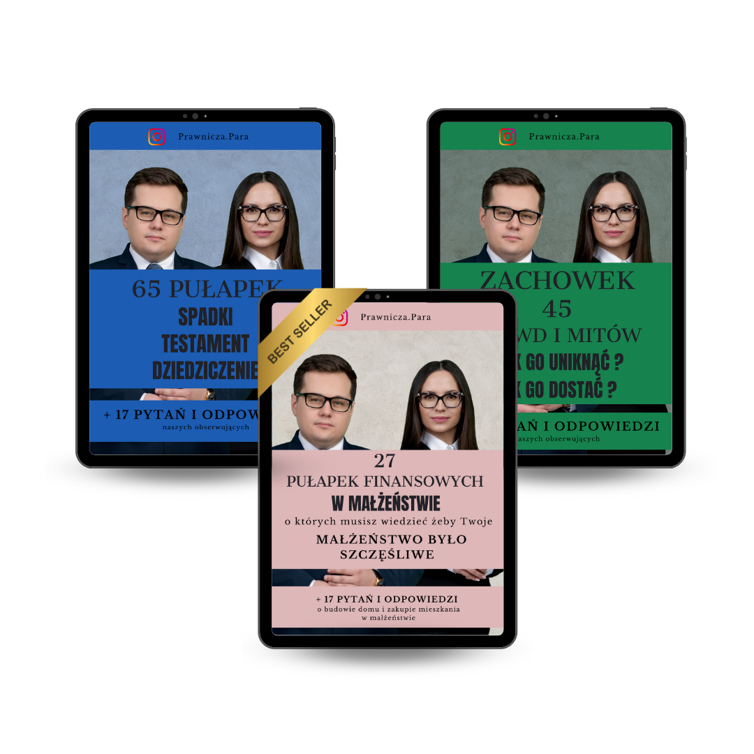 Zakupując naszego dowolnego ebooka lub zestaw otrzymujesz zniżkę na KONSULTACJĘ PRAWNĄ ONLINE z jednym z nas. Wysokość zniżki różni się w zależności od aktualnego cennika. Aktualnie zniżka wynosi 93 złotych.